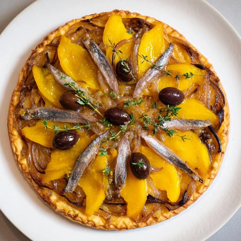 Save to Pinterest A Provençal specialty featuring caramelized onions, anchovies, and olives on a crisp, golden crust—a simple yet irresistible appetizer with just six ingredients.