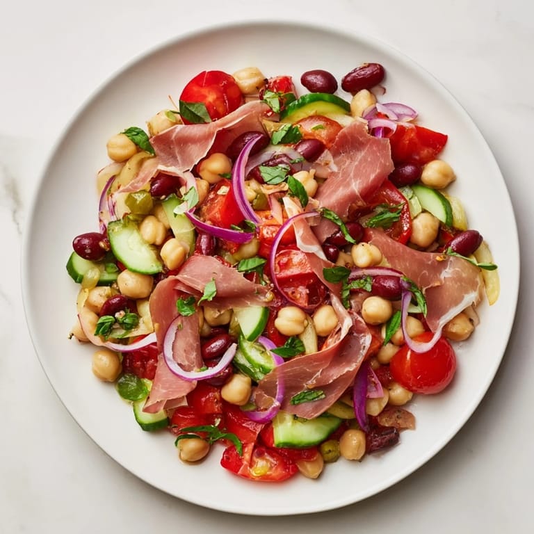 Save to Pinterest I threw this together on a late spring afternoon when I had a pantry full of canned beans and nothing else that felt like dinner. My neighbor had just come back from Italy with a paper-wrapped bundle of prosciutto, and she handed me half through the fence. I tore a piece right there in the kitchen, and the salty bite made me think of those beans sitting in the cupboard. Twenty minutes later, I had a bowl so colorful and satisfying I forgot I was supposed to be cleaning out the fridge.