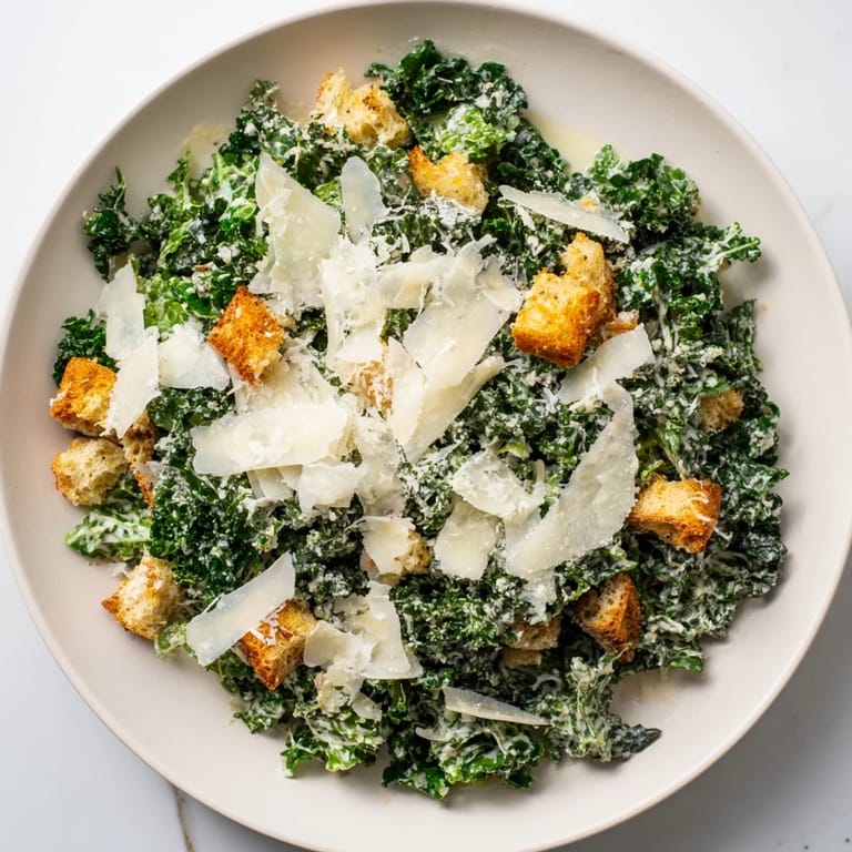Save to Pinterest I discovered the magic of massaged kale on a Tuesday afternoon when a friend stopped by with a bunch from her farmers market haul. She handed me the bag and casually said, "Trust me, just work it with your hands for a few minutes." Skeptical but curious, I did, and suddenly this tough, curly green transformed into something tender and almost silky. That's when I realized the classic Caesar didn't need reinventing—it just needed better greens. Now this salad is my answer to everything: a potluck that gets devoured, a solo dinner that feels celebratory, a way to actually enjoy eating my vegetables.