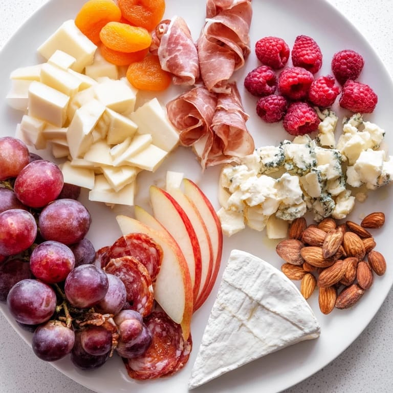 - Cheeses: 100 g Brie sliced into wedges, 100 g Aged Manchego cut into triangles, 100 g Gorgonzola Dolce crumbled, 100 g Goat cheese formed into small rounds
