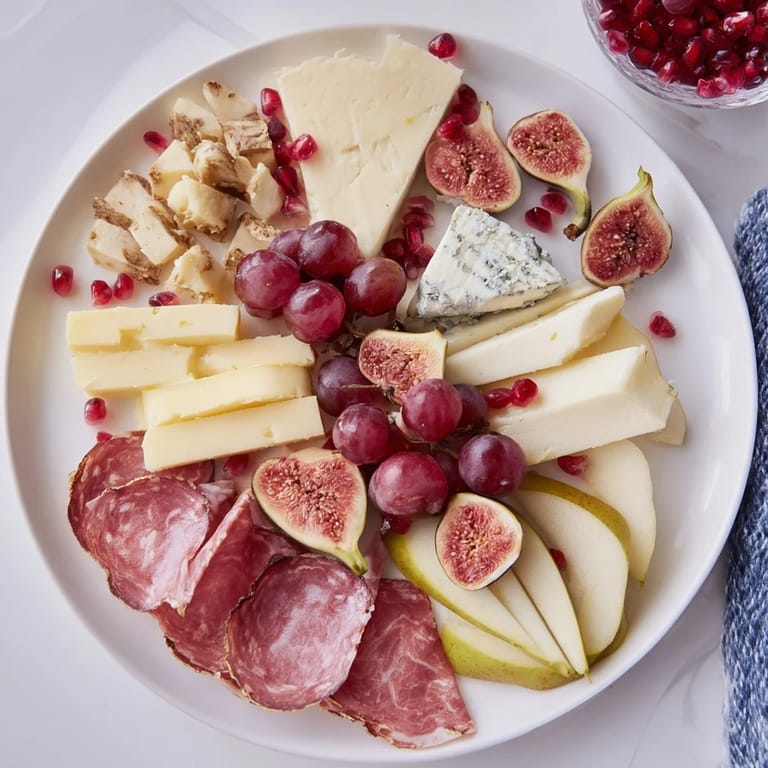 - Fresh Fruits: 1 bunch red grapes, 1 ripe pear, sliced, 1 ripe apple, sliced, 8 fresh figs, halved (or dried figs if out of season), 1 small pomegranate, seeds only