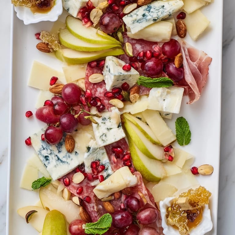 Save to Pinterest I'll never forget the first time I arranged a cheese board that actually made guests pause mid-conversation. It was at a dinner party where I wanted to impress, and instead of the usual scattered platter, I decided to create something with intention—a diagonal cascade of colors and textures that flowed like a river of edible jewels. That's when I discovered the magic of the pomegranate seed. Those ruby-red arils catching the light transformed what could have been just another appetizer into a moment of genuine delight. Now, every time I build this board, I'm chasing that same feeling: the gasp when someone sees it, the way people slow down to truly taste each pairing.
