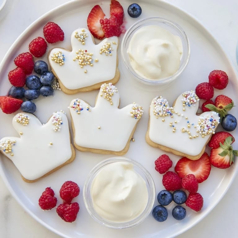 Save to Pinterest A whimsical, royal-inspired dessert tray featuring crown-shaped sugar cookies, berry jewels, and creamy white chocolate mousse. Perfect for birthdays, princess parties, or any magical celebration.