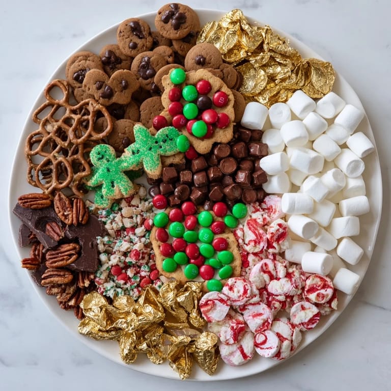 - Chocolates & Candies: 1 cup red and green M&Ms, 1 cup assorted holiday chocolate truffles, 1 cup peppermint bark pieces, 1 cup candy canes (mini or crushed), 1 cup gummy bears or holiday gummies, 1 cup chocolate-covered pretzels, 1 cup marshmallows (mini or shaped)