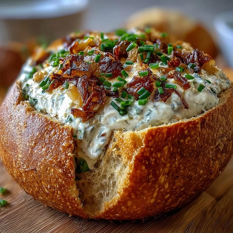 Save to Pinterest My neighbor brought this to a potluck last summer, and I watched it disappear faster than any casserole or salad ever could. The edible bread bowl felt like such a clever trick, the kind of thing that makes people think you spent hours in the kitchen when really, you just let onions do the heavy lifting. I got the recipe that night and have made it at every gathering since—it's become my secret weapon for looking like I know what I'm doing.