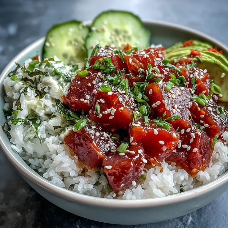 Save to Pinterest There's a moment when you first taste this—when the rice, still holding just a whisper of warmth, meets the cool spice of the tuna and the buttery give of avocado—that feels like breathing underwater. Suddenly you're not just eating lunch; you're somewhere else, and the simplicity of it all makes sense.